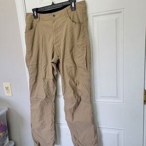 Eddie Bauer Fleece Lined Pants Tan Pockets Outdoors Straight Leg Mens 34 X 30