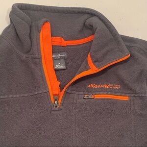 Eddie Bauer Fleece Pullover Kid 14 Gray Zip Chest Pocket 1/4 Zip Boy