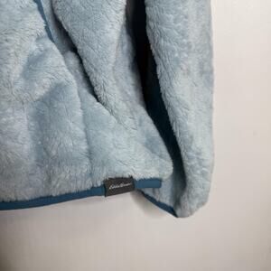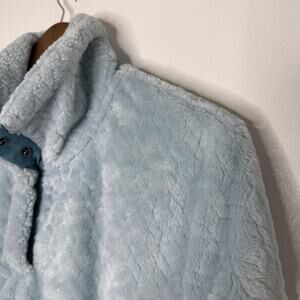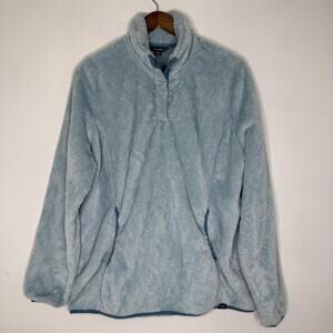 Eddie Bauer Fleece Pullover Womens XL Light Blue Snap Mock Neck Plush Sherpa