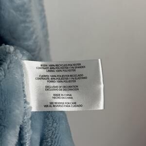 Materials: Body 100% recycled polyester; Contrast 89% polyester/11% spandex; Lining 100% polyester; Exclusive of decoration