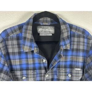 Eddie Bauer Fleece-Lined Plaid Shirt Jacket Blue Gray Plaid Men’s Tall Large