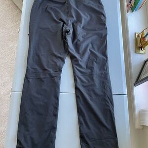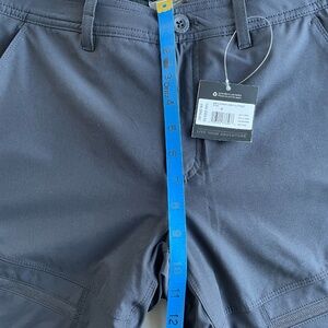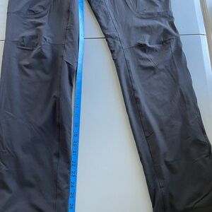 Lined hiking pant. Two way stretch woven fabric. Soft, warm fleece lining, StormRepel DWR finish sheds moisture. Fitted through the waist, hip, and thigh. Straight/Mid Rise.