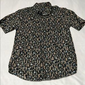 Eddie Bauer Fly Fishing Lure Printed Short Sleeve Button Down Shirt