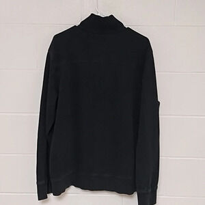 Men's casual Eddie Bauer Forest Green XL shirt, featuring double seams, 100% heavy cotton, and a 1/4 zip with a leather zipper pull. Ideal for the outdoorsman or anyone aiming for a rugged, stylish look in their streetwear or gorpcore ensemble, this heavyweight natural fiber pullover is perfect for layering or as a standalone piece for a chic casual appearance.