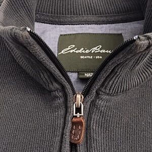 Eddie Bauer Forest Green XL 100% Heavy Cotton 1/4 Zip Shirt Leather Zipper Pull
