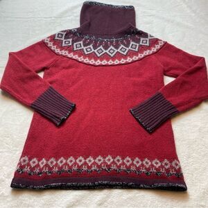 Eddie Bauer Funnel Neck Knit Fair Isle Sweater Size Small