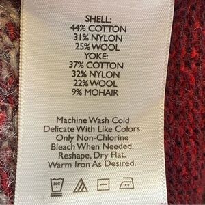 Eddie Bauer Funnel Neck Knit Fair Isle Sweater Size Small. Great used condition. Maroon, red, white and gray tones. Hand warmer front pocket. Drawstring at collar. Measures chest 36", length 25", sleeve 21" with dropped shoulders.