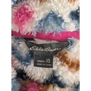Eddie Bauer Fuzzy Fleece Teddy Jacket Aztec Print Quarter Zip plush pullover XS
