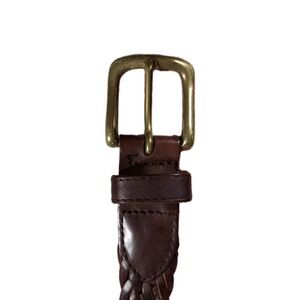 The Eddie Bauer Genuine Leather Belt in Men's XL size is a stylish accessory that exudes a vintage charm. Made from high-quality leather with a braided and woven design, this belt features a solid brown color and a brass hardware buckle. The classic Eddie Bauer brand adds a touch of sophistication to this timeless piece, making it a versatile addition to any man's wardrobe. Perfect for everyday wear, this belt is a durable and stylish choice for those who appreciate quality craftsmanship and timeless style.