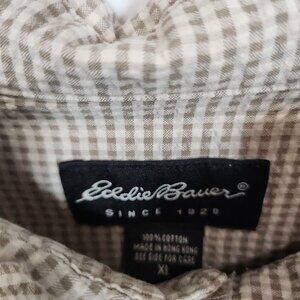 Eddie Bauer Gingham Button Down Shirt in Tan - Size XL