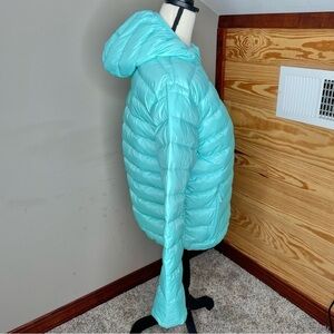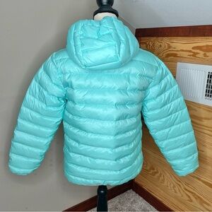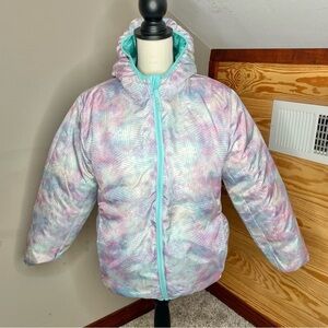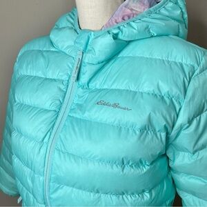 Eddie Bauer Girls Reversible Teal Blue Purple Down Puffer Jacket Extra Large 16