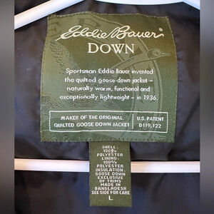 Eddie Bauer Goose Down Black Puffer Vest Faux Fur Collar Large