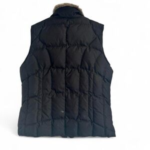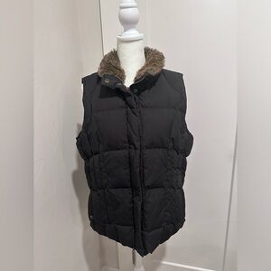 Eddie Bauer goose down black puffer vest with faux fur collar size large