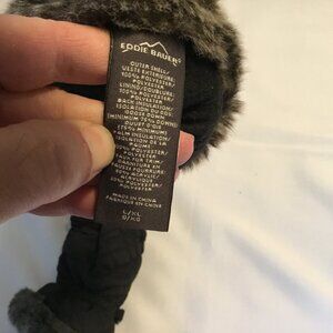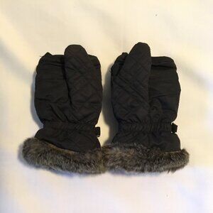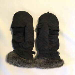 Eddie Bauer Goose Down Black Quilted Convertible Mittens with Faux Fur Trim L/XL