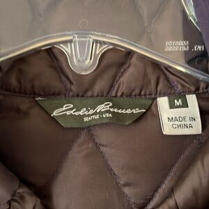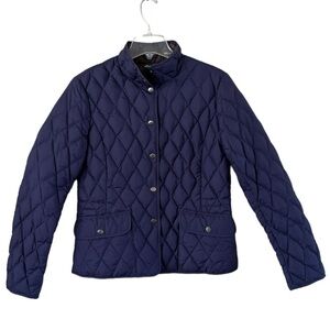 Eddie Bauer Goose Down Quilted Jacket Size M Navy Snap Closure Front Pockets