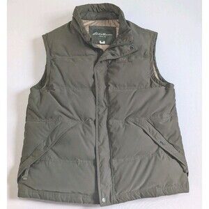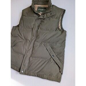 Eddie Bauer Goose Down Vest Mens Large Green Puffer Jacket Fill EB650 Olive Dad