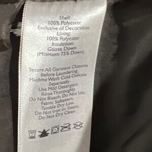 Materials: Shell 100% polyester, 100% nylon, Insulation: Goose down
