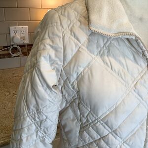 Stay warm and stylish with this elegant cream quilted jacket. Excellent preowned condition. Possible vintage
