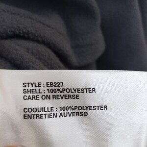 Polyester, measurements are 23" pit to pit, 26" length and 25" sleeve, long sleeve, tailored, 1/4 zip, collared, lightweight, color is gray, "gorilla" embroidery on back, relaxed hem, good condition and quality