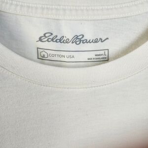 This Eddie Bauer women's graphic t-shirt in size Large is a must-have for dog lovers and adventure seekers.