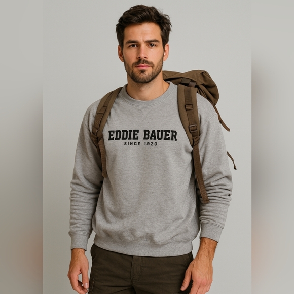 Classic and cozy, this Eddie Bauer crewneck sweatshirt features bold navy embroidery on a soft heather gray base. Made from a comfy blend of 85% cotton and 15% polyester, this piece offers warmth without the bulk and has that vintage collegiate vibe down pat.