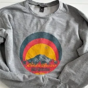 Eddie Bauer Gray Crewneck Sweatshirt with Retro Mountain Graphic