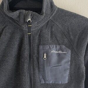 Eddie Bauer Gray Fleece Zip Up Jacket Boys Size 8/10 Kids High Neck Pockets
