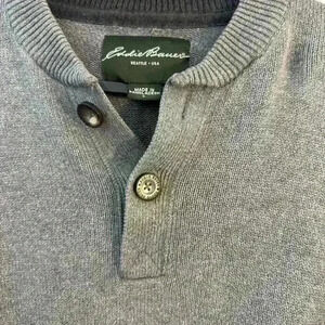 Eddie Bauer Gray Knit Henley Pullover Sweater Men's Size Large
