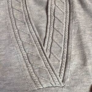 Light gray color Deep v-neck 100% merino wool Size 2XL A minor issue in one of the underarm areas - see photos
