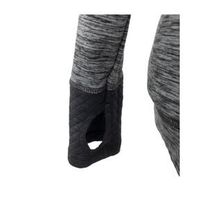 Feel polished yet comfy in this Eddie Bauer half zip pullover. The mock neck, quilted thumbhole cuffs, and contoured seams deliver a sleek athleisure look that layers effortlessly for workouts, coffee runs, or casual Fridays. The heathered gray and minimalist design nod to today’s quiet comfort trend while the stretch fabric keeps you moving with ease. Size Medium; excellent condition.