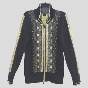 Eddie Bauer Gray Nordic Fair Isle Long Sleeve Full Zip Cardigan M.