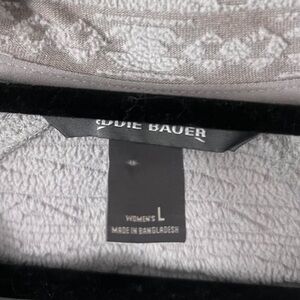 Eddie Bauer Gray Patterned Fleece Quarter Zip Sweater