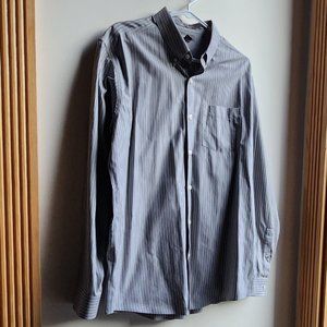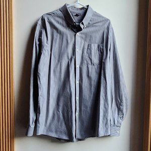 Eddie Bauer Gray Pin Striped Button Down Shirt Size Large. 100% cotton. Excellent quality and condition.