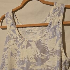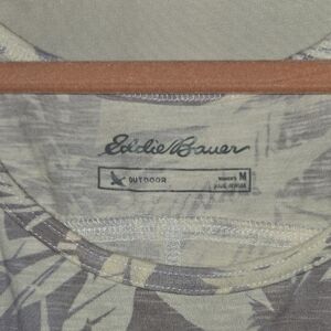 This Eddie Bauer tank top features a sophisticated gray floral pattern on a light, airy fabric, perfect for warm weather. The sleeveless design and scoop neckline offer a relaxed fit, while the slightly curved hem adds a flattering touch. Ideal for casual outings, this top combines comfort with a touch of elegance.