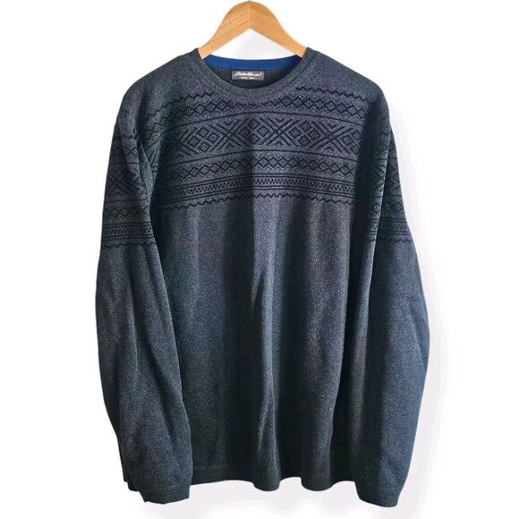 Eddie Bauer Gray Sweater Fair Isle Nordic Ski Lodge VTGY2K Grandpacore 50" Chest