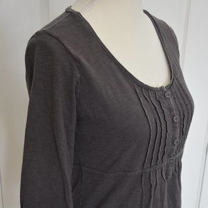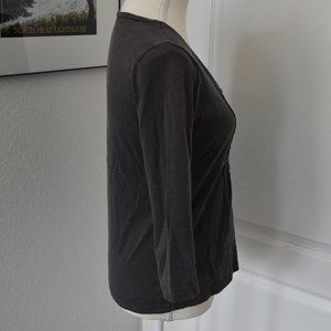 Eddie Bauer Gray Three-Quarter Sleeve Empire Waist Cotton Top XS