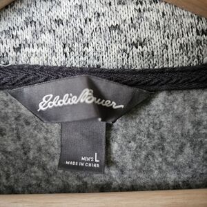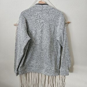 Eddie Bauer Gray V-Neck Sweater with Soft Fuzzy Material and Relaxed Fit L