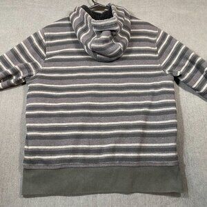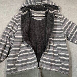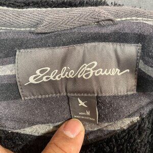 Eddie Bauer Gray & White Striped Full-Zip Hoodie Jacket Sherpa Lining Mens SZ M