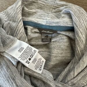 Women’s size XS Eddie Bauer gray hoodie pullover sweatshirt in excellent like new condition. Lightweight, super soft modal blend fabric. Loose oversize fit, clean nonsmoking home. Approx 21” pit to pit across bust, 13” pit to lower hem side length, 17” pit to wrist sleeve length.