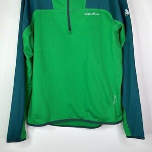 Eddie Bauer Green Blue Hooded 1/4 Zip Long Sleeve Shirt Size Medium