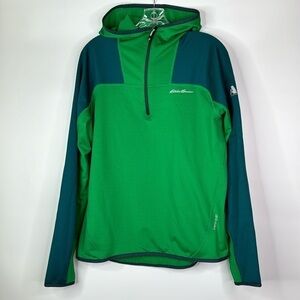 Eddie Bauer Green Blue Hooded 1/4 Zip Long Sleeve Shirt