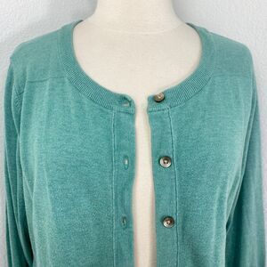 Eddie Baurer Green Button Front Cardigan Sweater Large ~ Coquette Academia Peasant