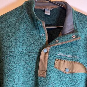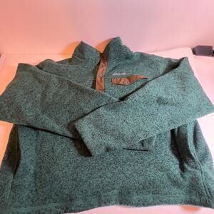 Eddie Bauer Green Fleece Qtr Snap Pullover Men's TXL Long Sleeved Side Pockets