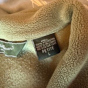 Soft fleece vest. Sleeveless design. Front zipper closure. Two side pockets.