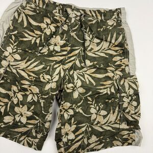 Eddie Bauer Green Floral Swim Trunks Cargo Pockets Drawstring Mesh Lined Sz M