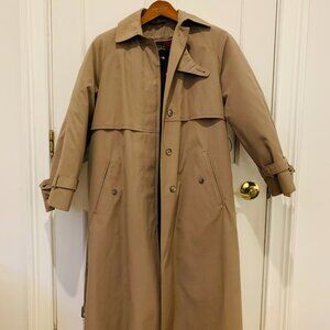 Eddie Bauer Coat Tan Goose Down Parka Trench Hooded Vintage Belted