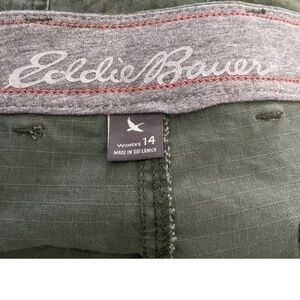 Eddie Bauer Green Leaf Camo Print Rip Stop 10” Shorts Womens 14 (1143)