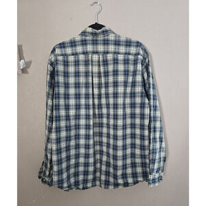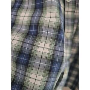 Eddie Bauer Green Plaid Long Sleeve Western Work Button Down Shirt Men's Size XL. Small hole on the front, pictured. Pre-owned