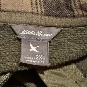 Eddie Bauer Green Quarter Zip Knit Pullover Sweater Women's Plus 2XL. Coordinating Plaid Inside Collar. High Neck. Cozy! Measurements in Pics. EUC.