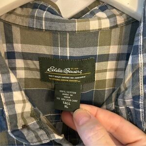 Eddie Bauer Green and Blue Casual Button Down Shirt